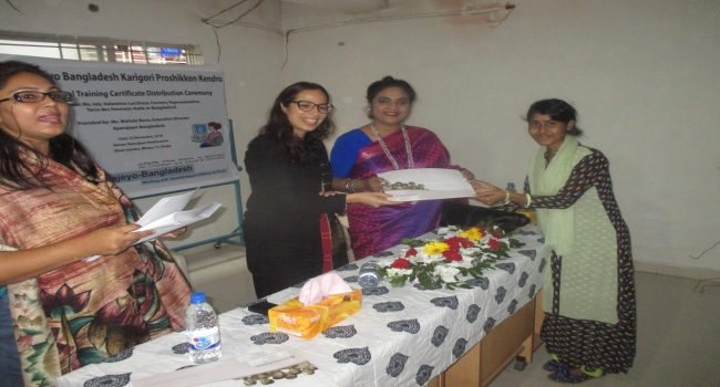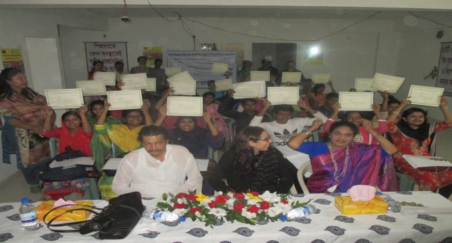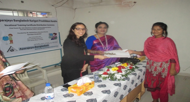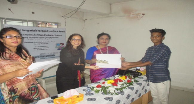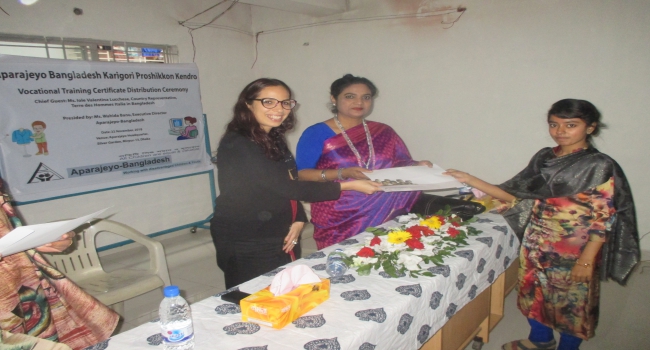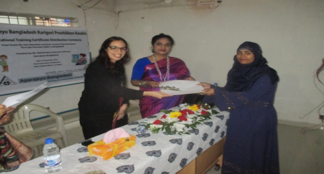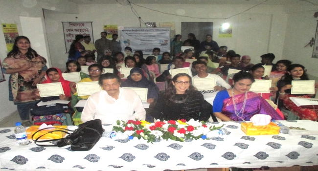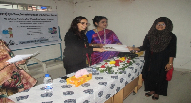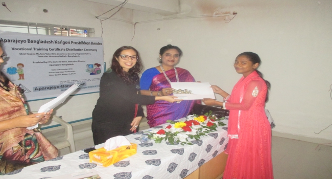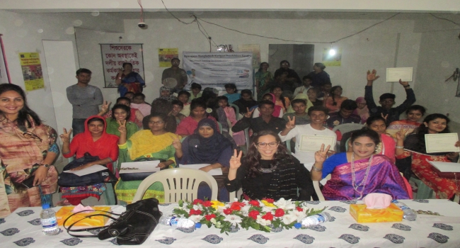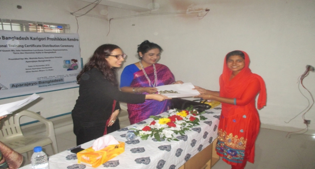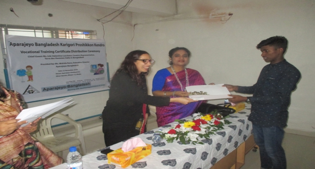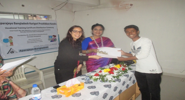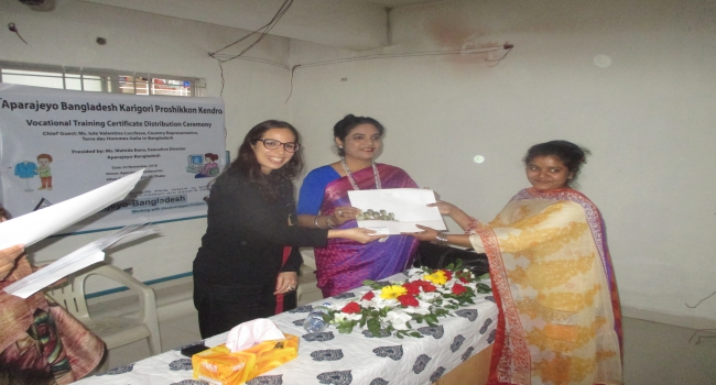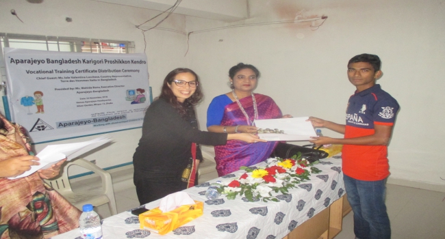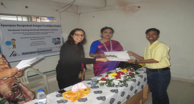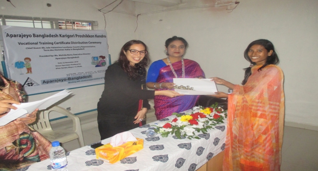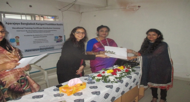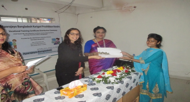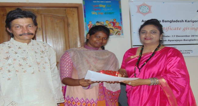 Find Out MoreAparajeyo-Bangladesh (AB) has been operational for the past 27 years in supporting the disadvantaged children, youth and women across Bangladesh. We believe that every child is born with fundamental rights. Each child is unique and has the right to a name and a nationality, the right to grow up in a safe and protective environment, an education, food, recreation & play, the right to health and proper health care. Each has the right to participate in matters that affect them, and the right to be treated equally. Every child has the right to be protected from all forms of abuse and exploitation. Aparajeyo- Bangladesh Karigori Proshikhon Kendra is a Government certified vocational training center under the Technical Education Board and began its operations in January 2016. There are two trade trainings offered at the center at Mirpur-13 - Dress Making & Tailoring training and Computer Office Application training. These courses last for three months and six months respectively. The trainings are conducted in two batches of students who arrive at their designated times to attend the classes offered by the experienced trainers. AB trainers have been out in the fields in order to make community members aware of the facilities available at the center.